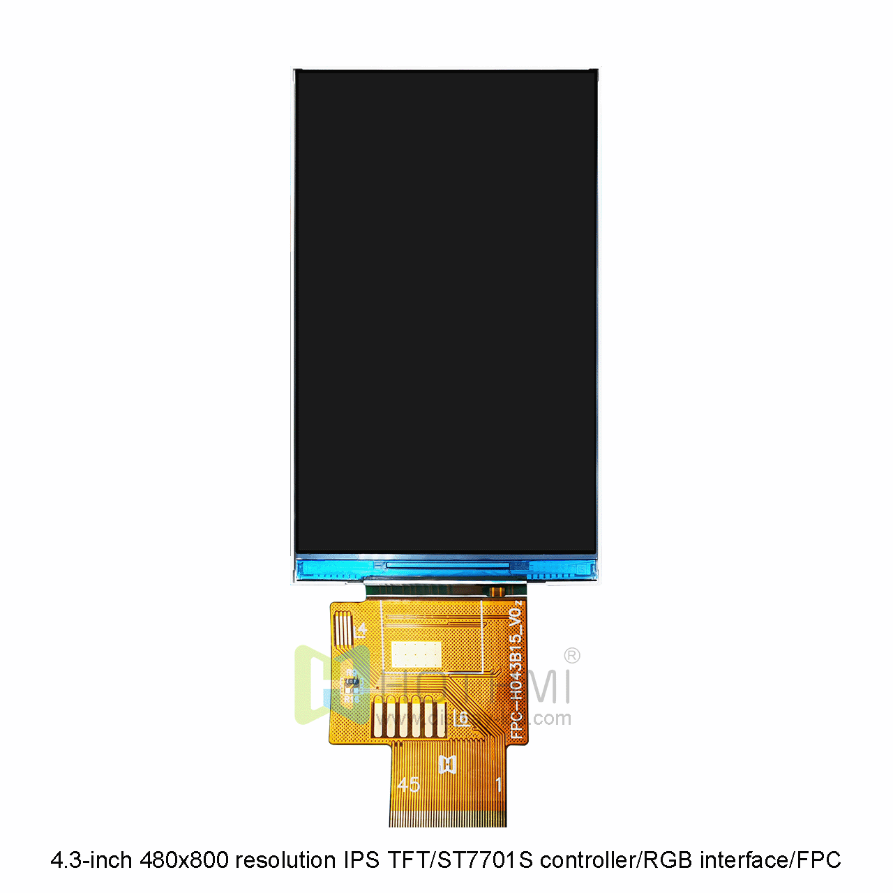 Location:Home  >  Product center  >  TFT display  >  TFT display standard products | Full-view TFT color screen | High-brightness series TFT  >  4.3英寸480x800分辨率IPS寬溫TFT/ST7701S控制器/RGB接口/FPC插接/STM32/RK TFT-H043B15WVIST4N45