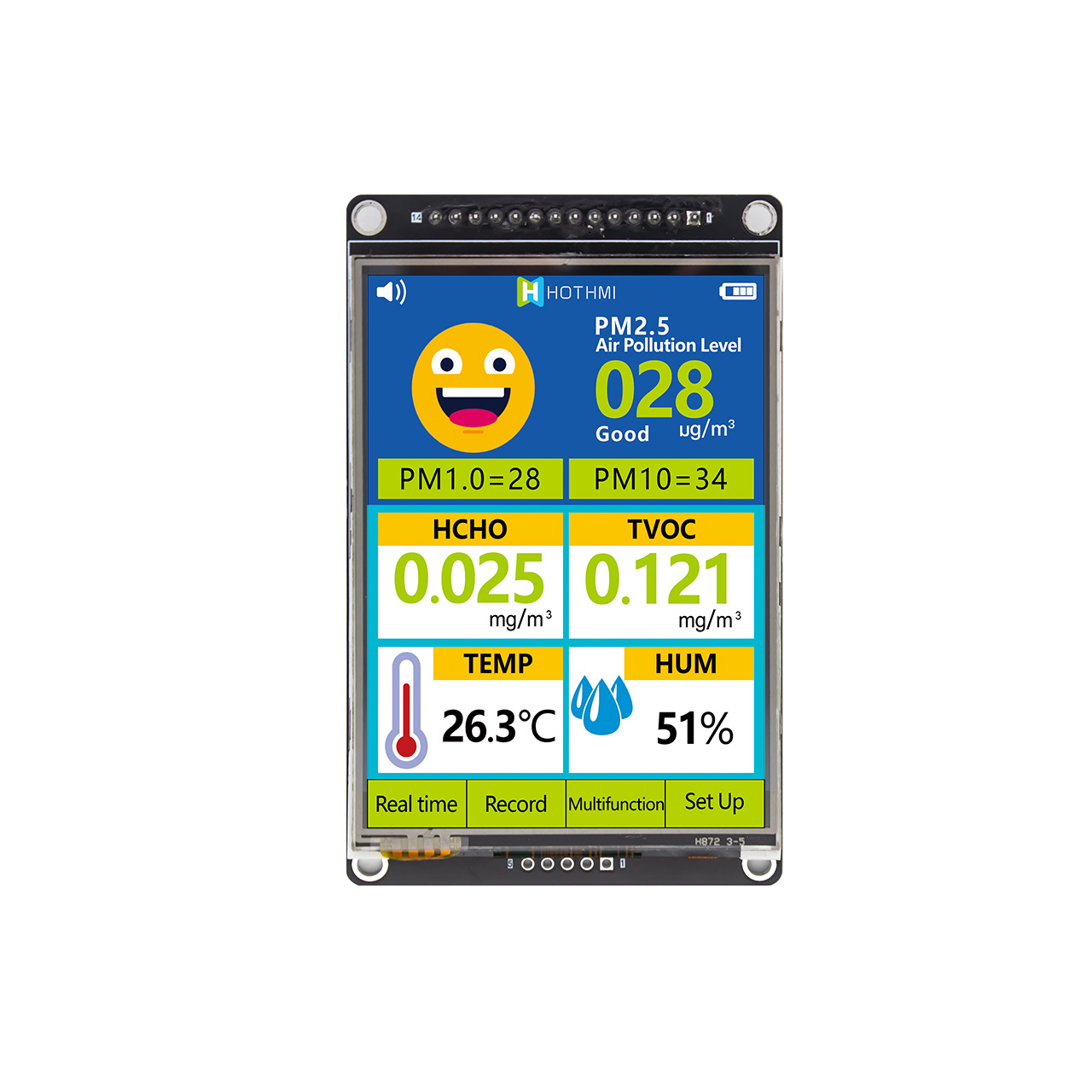If the MCU interface is not your best choice, we provide the SPI interface version of the same series. Engineers can also choose the TFT display with FPC cable corresponding to this module to develop a suitable driver board by themselves, TFT-H032A05QVIST6N40. The same size product series also includes the 3.2-inch resistive touch display TFT-H032A3QVTST3R40. We provide customized services. Users can customize the cover, customized FPC cable, customized touch solution, customized communication interface, and surface treatment method (AG/AR/AF). A variety of solutions are available. All our products comply with ROHS standards.