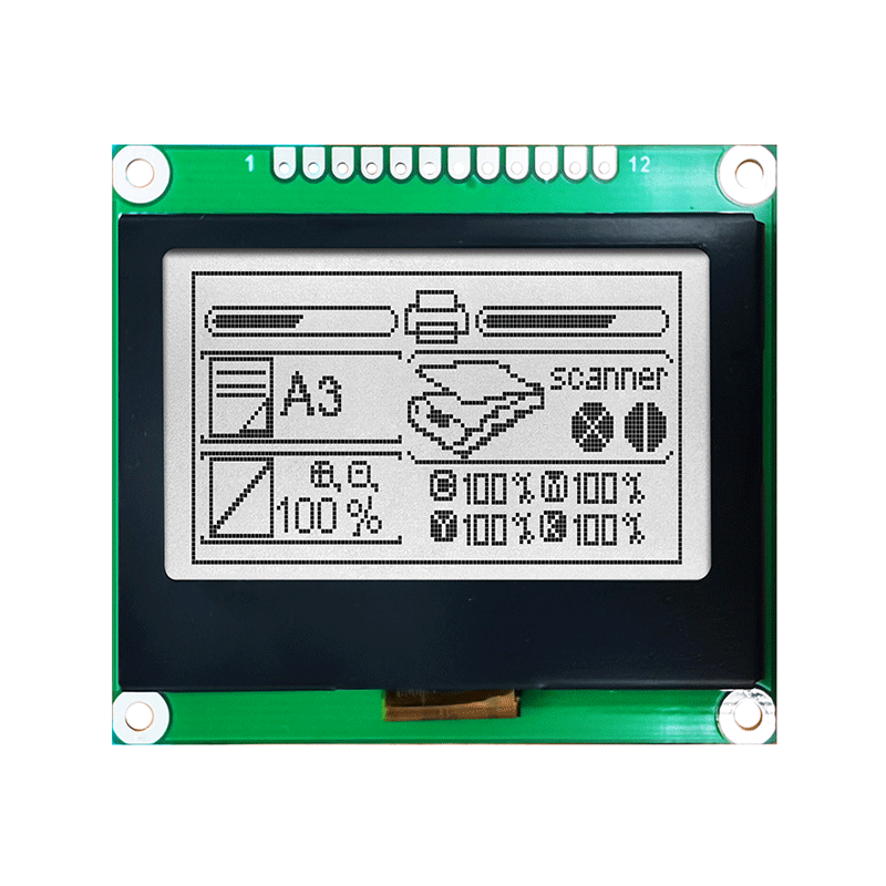 Featuring a 128x64 pixel transflective LCD display, this module offers clear and easy-to-read visuals with a 6 o'clock viewing angle. The FSTN (+) positive display and built-in negative voltage ensure excellent contrast and sharpness, making it suitable for use in both bright and dimly lit environments. The side white backlight provides additional visibility in low-light conditions.