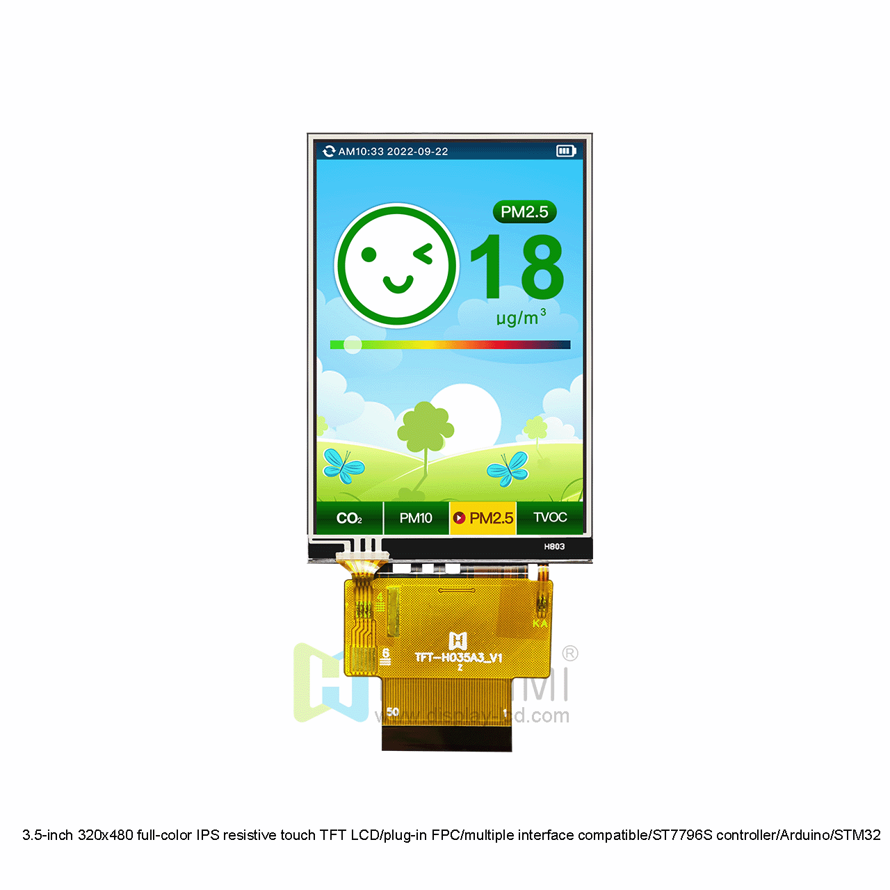 Location:Home  >  Product center  >  TFT display  >  TFT display standard products | Full-view TFT color screen | High-brightness series TFT  >  3.5 英寸320x480 IPS電阻觸摸TFT/插接FPC/多種接口兼容/ST7796S控制器/Arduino/STM32 TFT-H035A3HVIST4R50