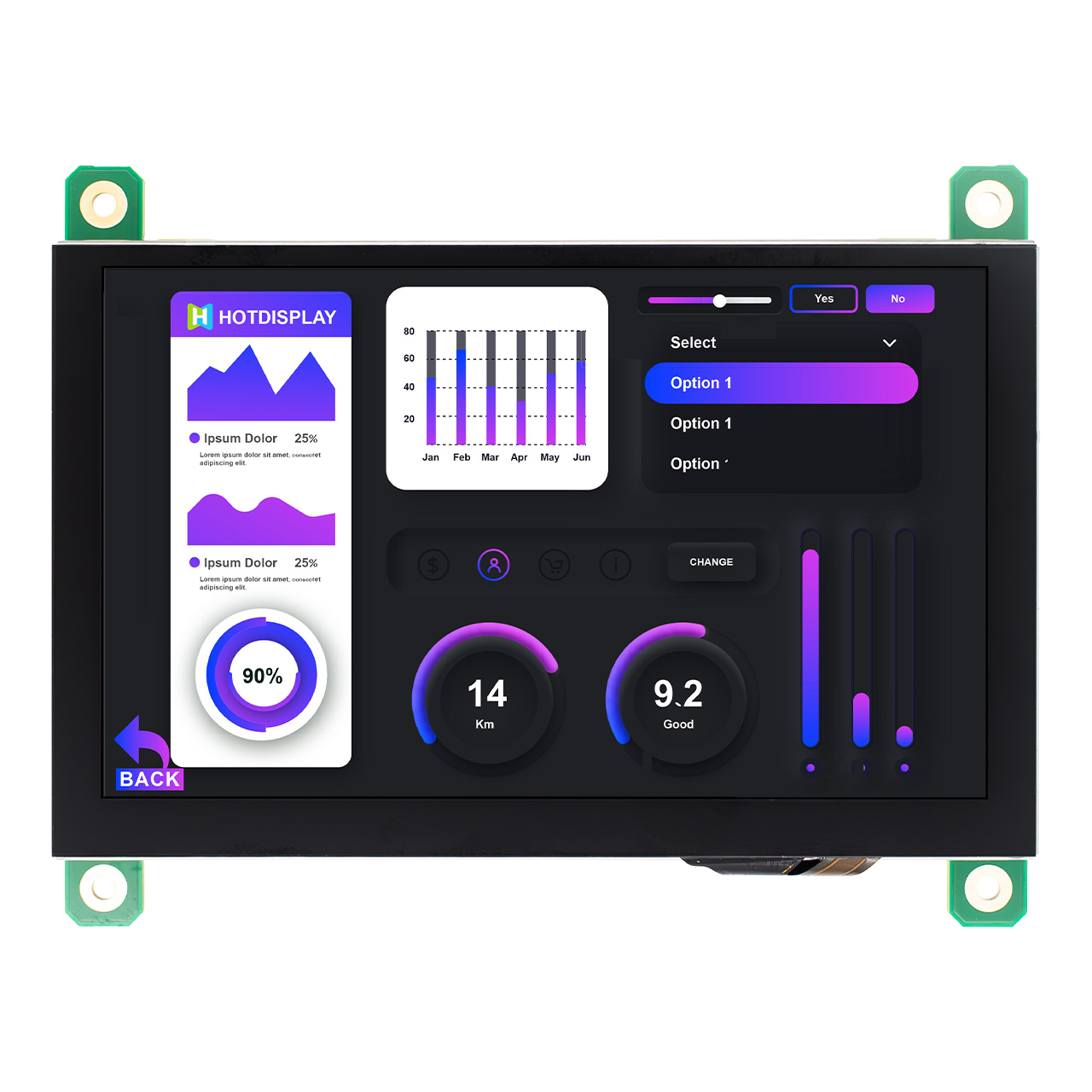 All display and operation of Xin Hongtai intelligent LCD module are based on the variable configuration file preset in the module. When using, the interface designed by the computer can be switched into the intelligent display module through the interface to switch and refresh between different display interfaces.