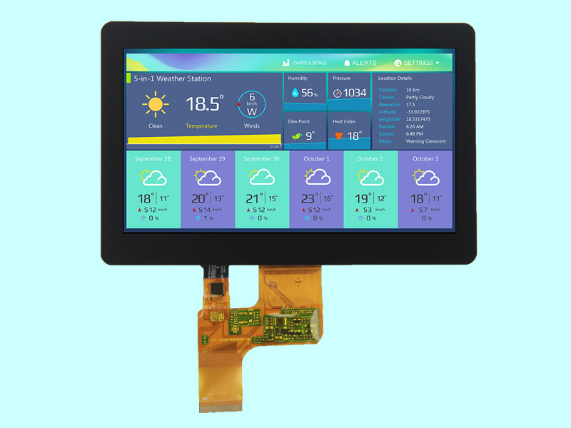 這是一款工程師用心設(shè)計的7寸高清高亮全視角帶電容觸摸的TFT顯示屏,F(xiàn)PC內(nèi)建了T-CON電路,僅需3.3V可以直接驅(qū)動,同時也內(nèi)建了10點觸摸芯片,減少了客戶主板外圍電路,提高了客戶開發(fā)產(chǎn)品的效率。非常適合智能家居產(chǎn)品和工業(yè)設(shè)備人機(jī)界面使用。