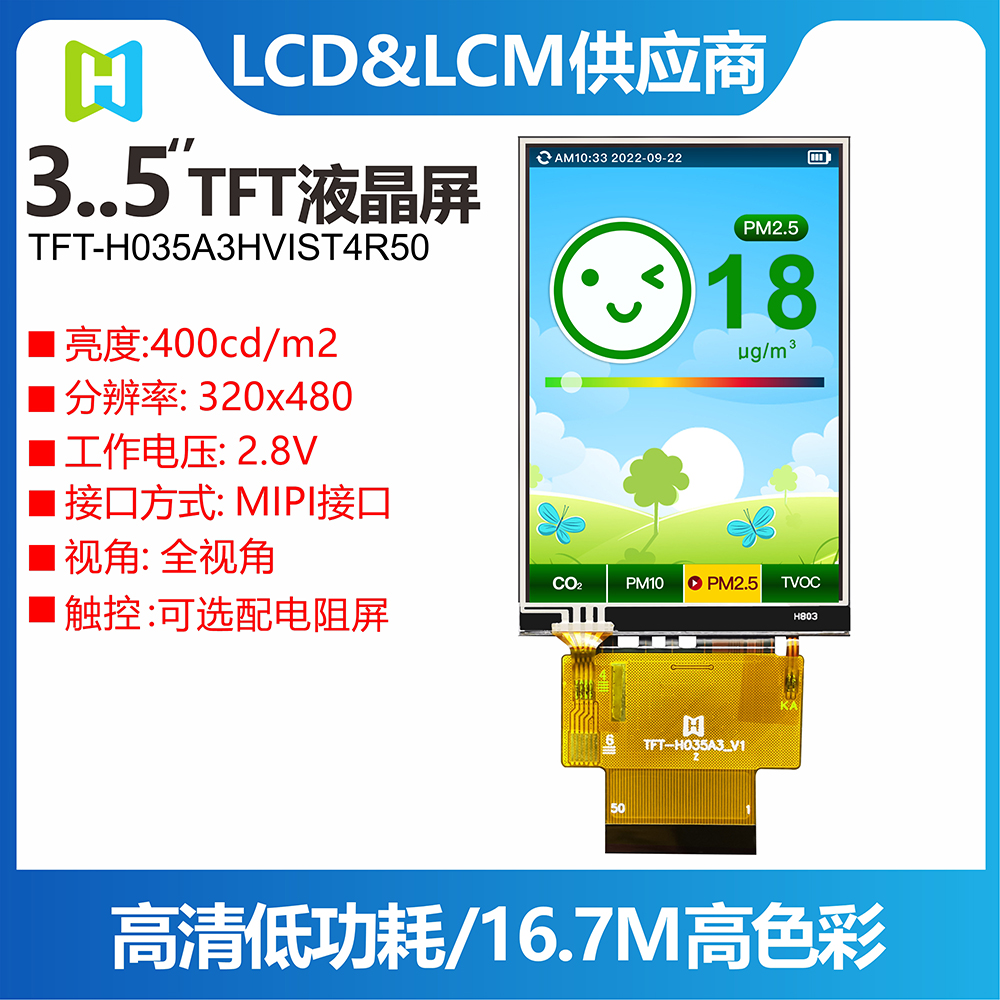 TFT-H035A3HVIST4R50 是一款 3.5 英寸寬溫 IPS TFT-LCD 顯示器,帶有投射電阻式觸摸屏,分辨率為 320X480 像素。 模塊內(nèi)置ST7796S驅(qū)動(dòng)IC,支持MIPI全兼容接口。 TFT-H035A3HVIST4R50采用IPS面板,具有視角更廣的優(yōu)勢(shì),左:80/右:80/上:80/下:80度(典型值),對(duì)比度800:1(典型值),亮度400尼特 (典型值),眩光面板,1:1.5 縱橫比。 支持I2C接口和單點(diǎn)觸控功能。 H035A3H 型號(hào)具有投射電阻式觸控面板 (PCAP), TFT-H035A3HVIST4R50的供電電壓(VCC)為2.5V至3.0V,典型值為2.8V。 它可以在 -20°C 至 +70°C 的溫度和 -30°C 至 +80°C 的存儲(chǔ)溫度下工作。