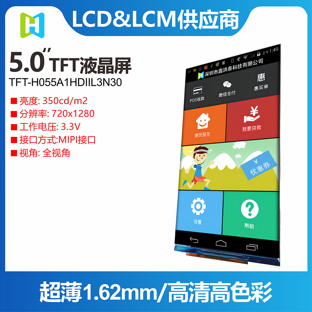 5.5寸TFT豎屏|720*1280分辨率|IPS全視角|MIPI接口|TFT-H055A1HDIIL3N30