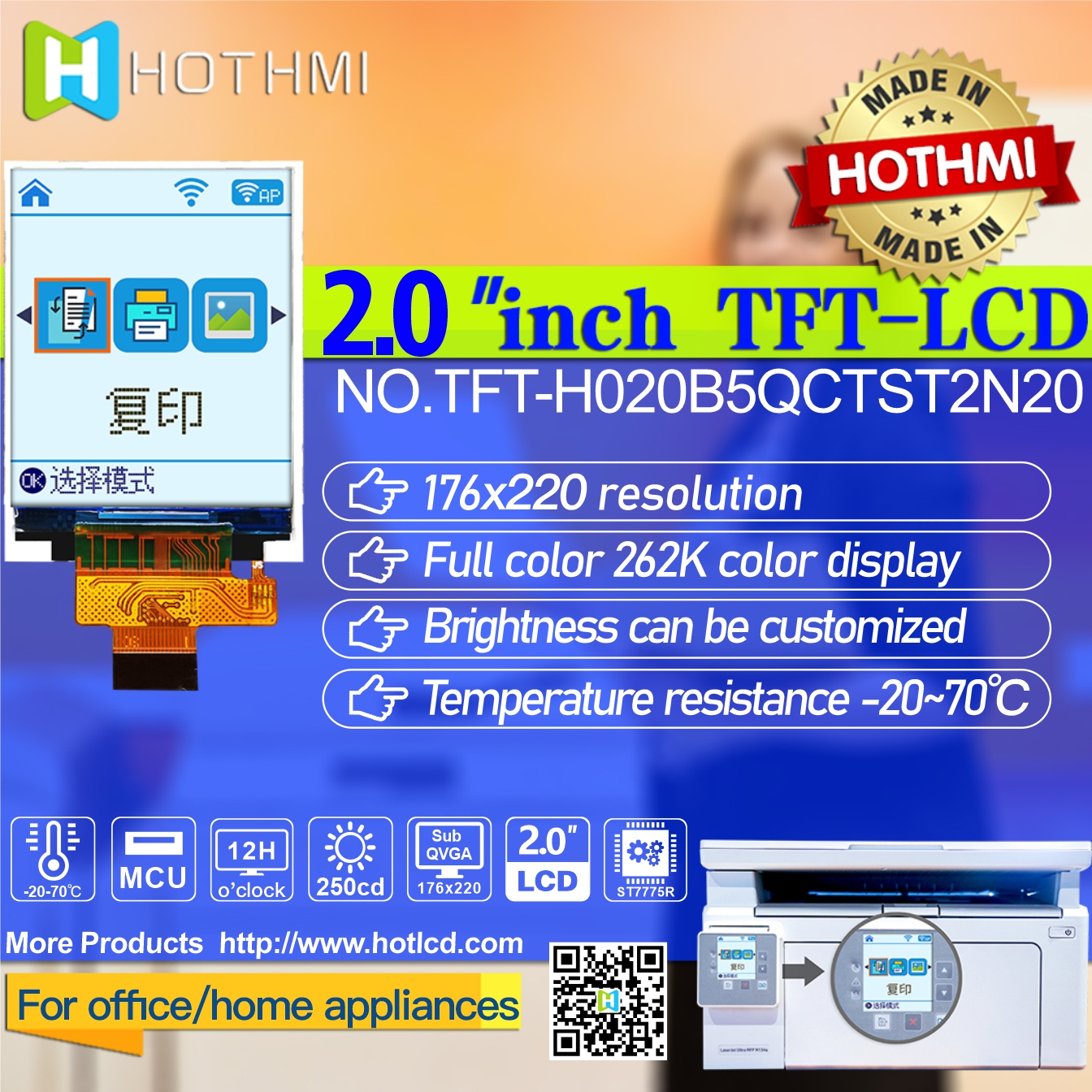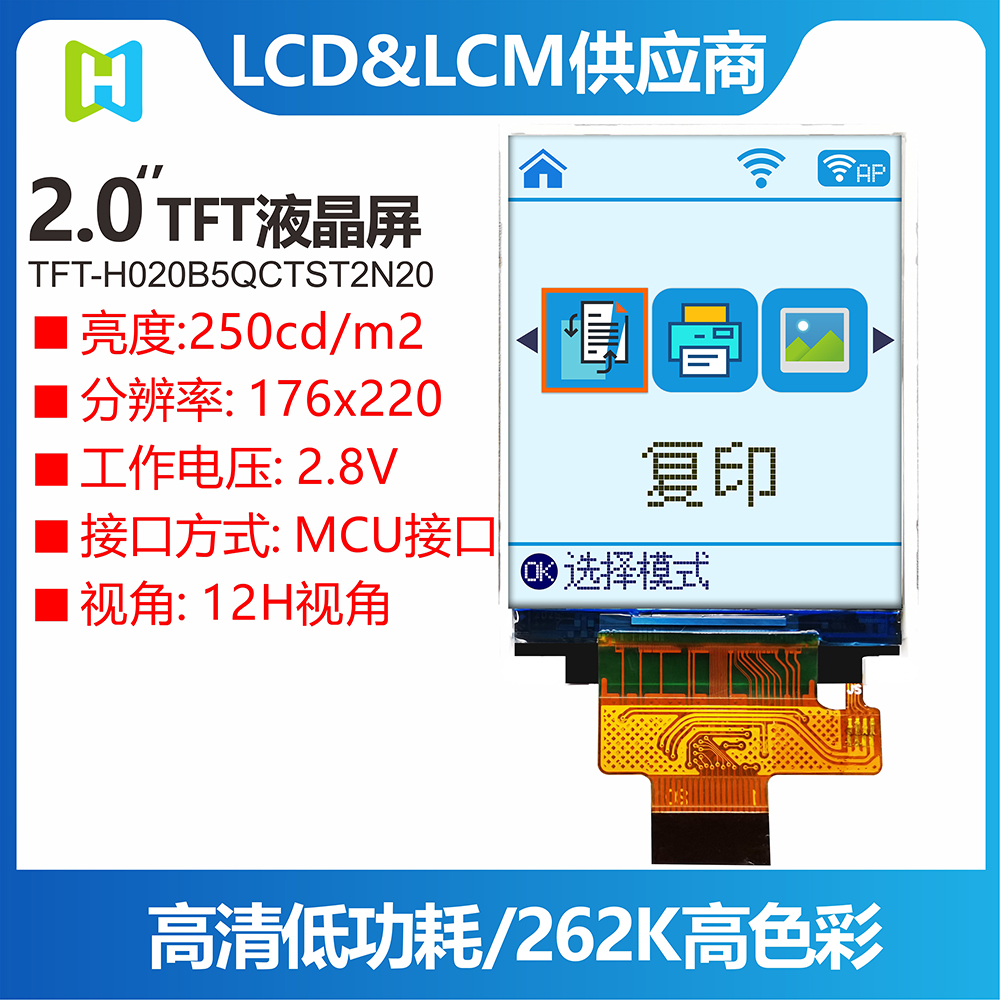 TFT-H020B5QCTST2N20 是鑫洪泰HOTLCD研發(fā)團(tuán)隊(duì)精心設(shè)計(jì)的一款2.0寸豎屏TFT彩色液晶顯示屏,176*220分辨率,12H視角,65K/262K真彩色,內(nèi)置ST7775R控制器,支持MCU 8bit接口,20PIN插接式FPC即可連接主板(可選配連接器),單電源DC3.2V供電.此款TFT模塊可選配觸摸屏,所有材料均符合環(huán)保要求RoHS標(biāo)準(zhǔn),廣泛應(yīng)用于各式儀器儀表、智能設(shè)備、分析儀器、手持式儀器、行車(chē)紀(jì)錄儀等, 適用于多種單片機(jī)開(kāi)發(fā)平臺(tái),如:8051、PIC、AVR、ARDUINO、ARM和樹(shù)莓派Raspberry Pi等。