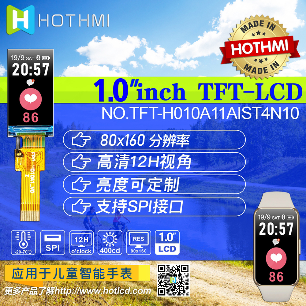 產(chǎn)品描述 TFT-H010A11AIST4N10是一款1.0英寸全彩TFT液晶顯示模組,分辨率為80x160像素,寬高比為1:2。 TFT模塊采用ST7735S驅(qū)動IC,支持SPI接口。 采用IPS面板的TFT模組具有廣視角優(yōu)勢(左80度/右80度/上80度/下80度),典型對比度為800:1,模組亮度高達400尼特( 典型值)。 模塊工作溫度范圍-20℃~+70℃,儲存溫度范圍-30℃~+80℃。