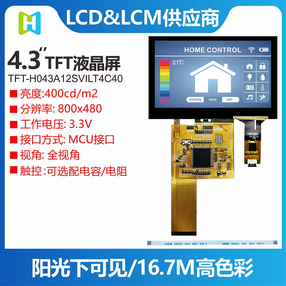 TFT-H043A12SVILT4C40 4.3寸TFT-LCD顯示器顯示全方位視角,此型號(hào)外觀尺寸為 105.42*67.07mm, 有效尺寸為95.040*53.856mm,4.3寸A12的工作溫度為-20℃~+70℃而儲(chǔ)存溫度則為-30℃~+80℃。此款4.3寸顯示屏帶有電容式觸控屏幕。產(chǎn)品主要用于工業(yè)級(jí)設(shè)備上包含了工業(yè)儀器儀表設(shè)備醫(yī)療儀器、GPS導(dǎo)航、咖啡機(jī)、洗衣機(jī)等白色家電、能源系統(tǒng)、充電樁、POS系統(tǒng)、自動(dòng)販賣機(jī)、停車場收費(fèi)機(jī)等.
