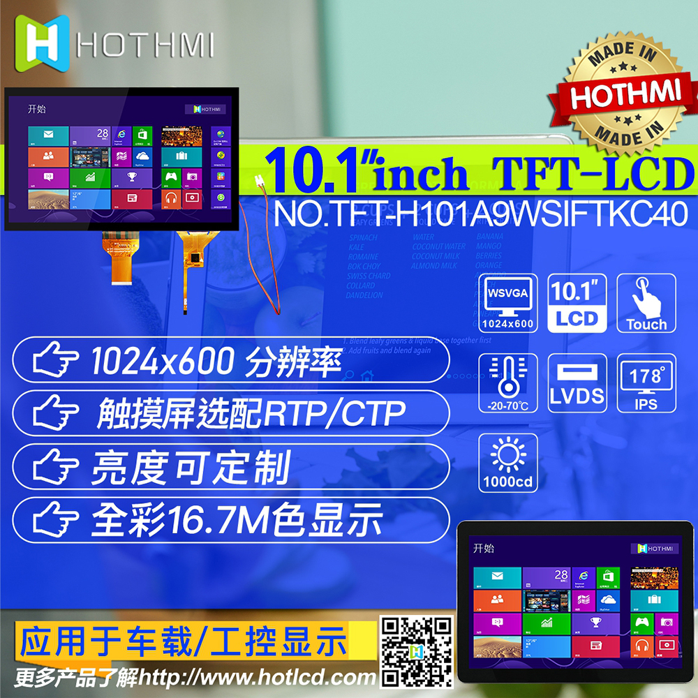 TFT-H101A9WSIFTKC40 是一款 10.1 英寸寬溫 IPS TFT-LCD 顯示器,帶有投射電容式觸摸屏,分辨率為 1024x600 像素。模塊內(nèi)置EK79001+EK73215驅(qū)動IC,支持LVDS接口。 TFT-H101A9WSIFTKC40采用IPS面板,具有視角更廣的優(yōu)勢,左:80/右:80/上:80/下:80度(典型),對比度800:1(典型),亮度1000尼特(典型) ) 值),眩光面板,16:9 縱橫比。觸摸屏內(nèi)置GT9271 IC,支持I2C接口和多點觸控功能。 H101A9 型號具有投射電容式觸控面板 (PCAP),但沒有觸控面板選項 (TFT-H101A9WSIFTKN40)。 TFT-H101A9WSIFTKC40的供電電壓(VCC)為3.0V至3.6V,典型值為3.3V。它可以在 -20°C 到 +70°C 的溫度和 -30°C 到 +80°C 的存儲溫度下工作。