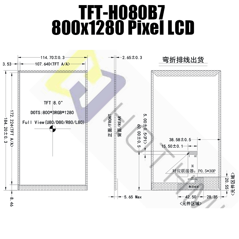 隆重推出 TFT-H080B7HDINV6N30,這是一款 8.0 英寸 IPS LCD 顯示屏,具有 800x1280 像素的高分辨率,可提供具有鮮艷色彩和清晰細(xì)節(jié)的驚人視覺效果。 憑借其先進(jìn)的技術(shù),該顯示器還設(shè)計(jì)為陽(yáng)光下可讀,即使在明亮的戶外環(huán)境中也能確保最佳可見度。