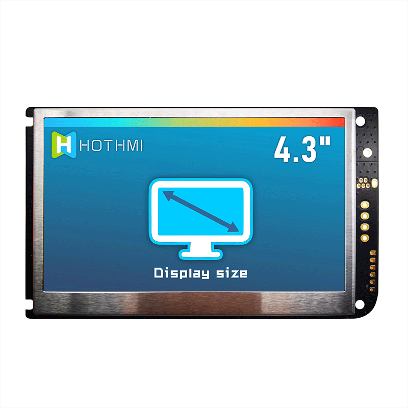 HTM-H043A2-A5-UART 是一款 4.3 英寸 IPS TFT LCD 顯示模塊,分辨率為 480x272 像素。 它帶有一個(gè) LCD 控制板,亮度為 500cd/m2。 該模塊使用 UART (TTL) 接口進(jìn)行通信,工作溫度范圍為 -20°C 至 70°C。