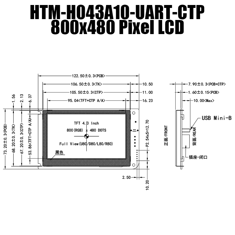 4.3英寸對(duì)角線彩色TFT屏,標(biāo)配無(wú)觸摸/電阻觸摸/電容觸摸