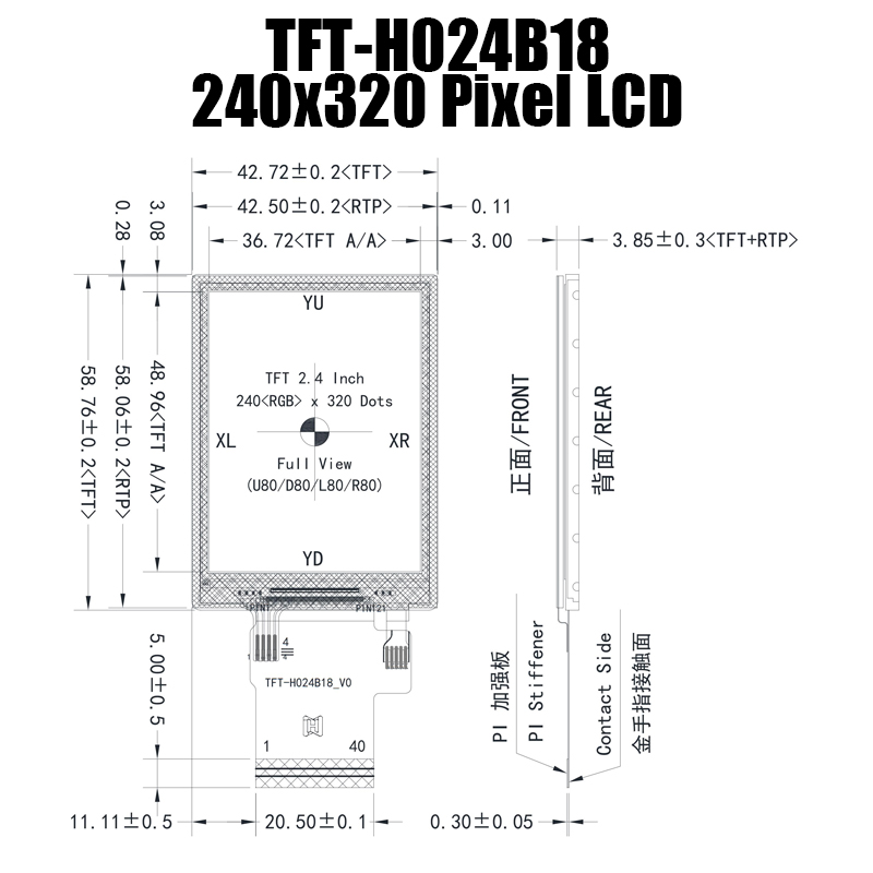 TFT-H024B18QVISTKN40 2.4英寸IPS TFT LCD顯示面板