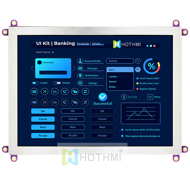 LCM-TFT080T61SVHDVNSDC是一款8寸彩色液晶顯示模塊,配備HI驅(qū)動(dòng)板,具有1024x768分辨率。可選配電阻式觸摸屏和電容式觸摸屏,同時(shí)支持USB接口驅(qū)動(dòng)板。為了提供更便捷的使用體驗(yàn),我們重新設(shè)計(jì)了HI驅(qū)動(dòng)板,使其與顯示屏完美融合,節(jié)省空間。四個(gè)定位孔方便客戶(hù)進(jìn)行安裝。所有材料均符合RoHS環(huán)保標(biāo)準(zhǔn)。該模塊廣泛應(yīng)用于車(chē)載、安防、各類(lèi)儀器儀表、智能設(shè)備等領(lǐng)域。適用于樹(shù)莓派(Raspberry Pi)等平臺(tái),兼容Raspbian、Ubuntu、WIN10 IOT等操作系統(tǒng),支持單點(diǎn)觸控。在臺(tái)式電腦上,兼容Windows 7/8/8.1/10等系統(tǒng),支持5點(diǎn)觸控。