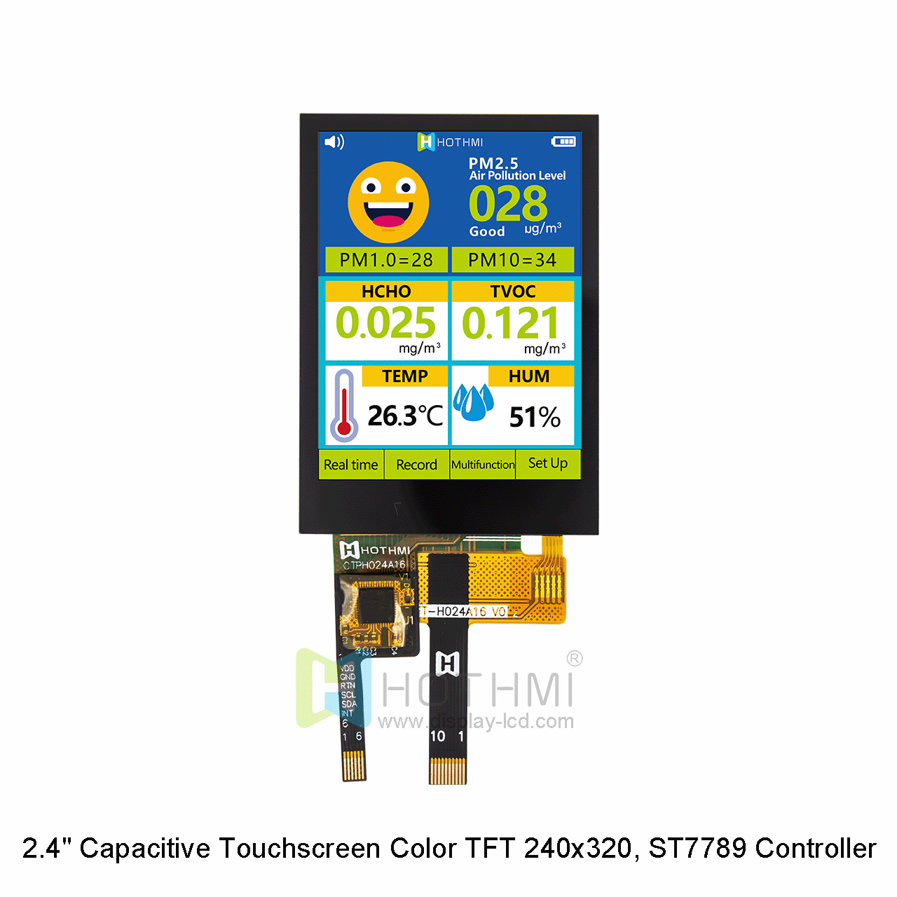 2.4 英寸電容觸摸屏彩色 TFT 240x320,ST7789控制器TFT-H024A16QVIST4C10 顯示屏采用緊湊的 2.4 英寸封裝,以 240x320的分辨率呈現(xiàn)生動的全彩圖像,可呈現(xiàn)清晰銳利的圖像和文本,非常適合小型應用和近距離觀看。電容式觸摸屏可讓用戶快速輕松地向主機設備輸入信息。