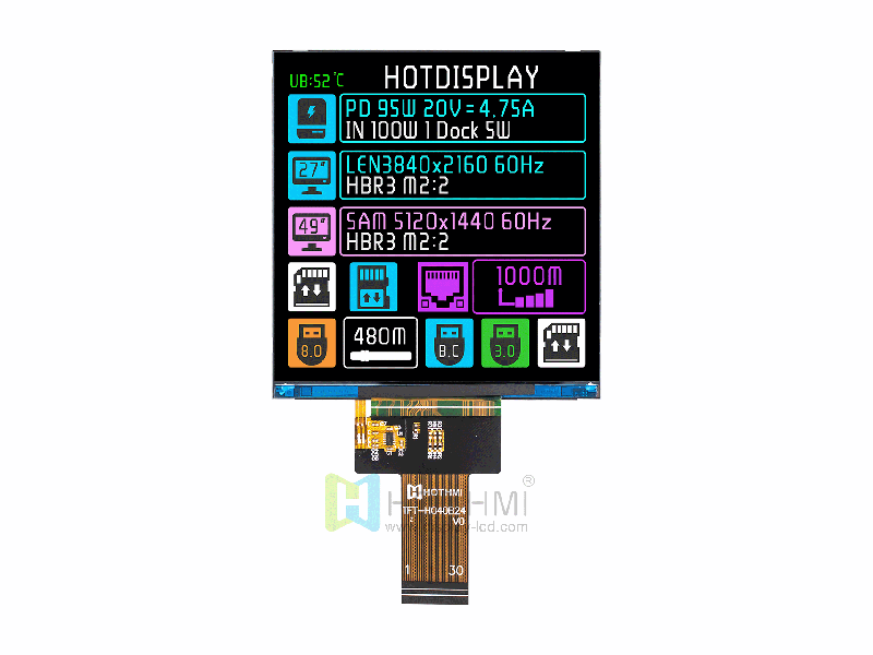 | 4寸彩色高清液晶顯示模塊IPS 720X720點(diǎn)陣彩屏模組 NV3052 RGB 陽(yáng)光下可見 TFT-H040A20DKINV 6N40 | TFT方屏 | 720x720 |
