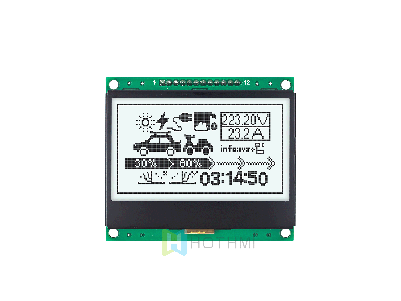 | 3 英寸128x64 圖形 LCD 顯示模塊 | SPI 接口 | 白底灰字 | FSTN 正向 | 半透偏光片 HTM12864-123-31W-A3P | 圖形液晶模組 | 128x64 |