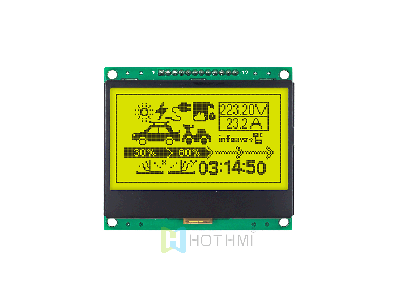 | 3英寸128x64 圖形液晶LCD顯示模塊 | 3.3V | STN +黃綠背光 | Arduino HTM12864-123-11Y-A3P | 圖形液晶模組 | 128x64 |