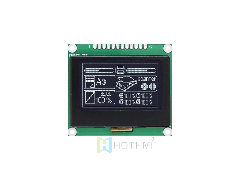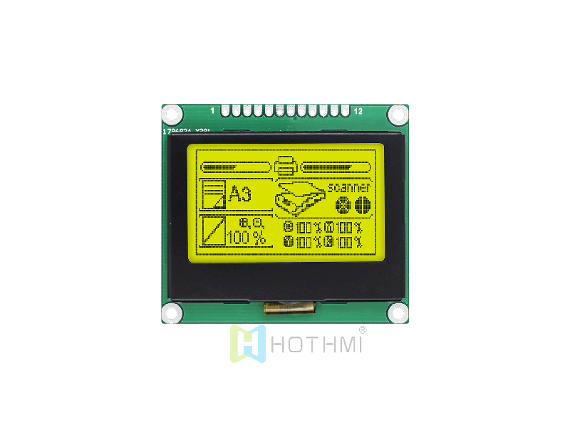 | 2英寸128x64LCD圖形液晶顯示模塊/12864圖形點(diǎn)陣模組|STN正顯黃綠背光/3.3v HTM-COG12864T01A-01Y-A3P-SPI | 圖形液晶模組 | 128x64 |