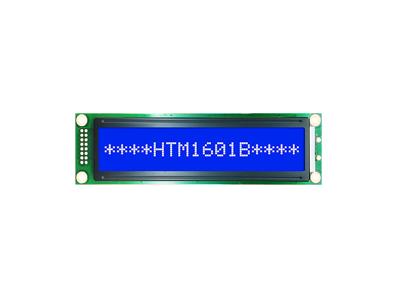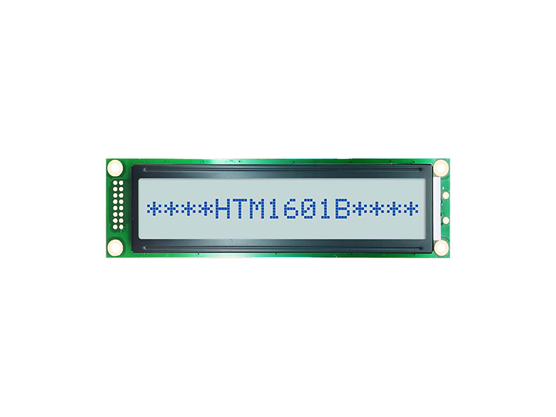 1x16字符液晶| STN- 帶白色背光的藍色顯示屏 HTM1601C 標準COB字符液晶模組 16x1 122x33x11.3 99x13 94.73x9.56 0.87x1.0 6H 白色 16pin MCU 抗靜電ESD 8KV -20~70℃ 5.0V ST7066U