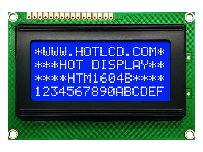 4x16 字符液晶顯示屏 STN - 藍色顯示屏,帶白色側(cè)背光 HTM1604B 標準COB字符液晶模組 16x4 87x60x10.4 62x27.2 56.2x20.8 0.55x0.55 6H 白色 16pin MCU 抗靜電ESD 8KV -20~70℃ 5.0V ST7066U